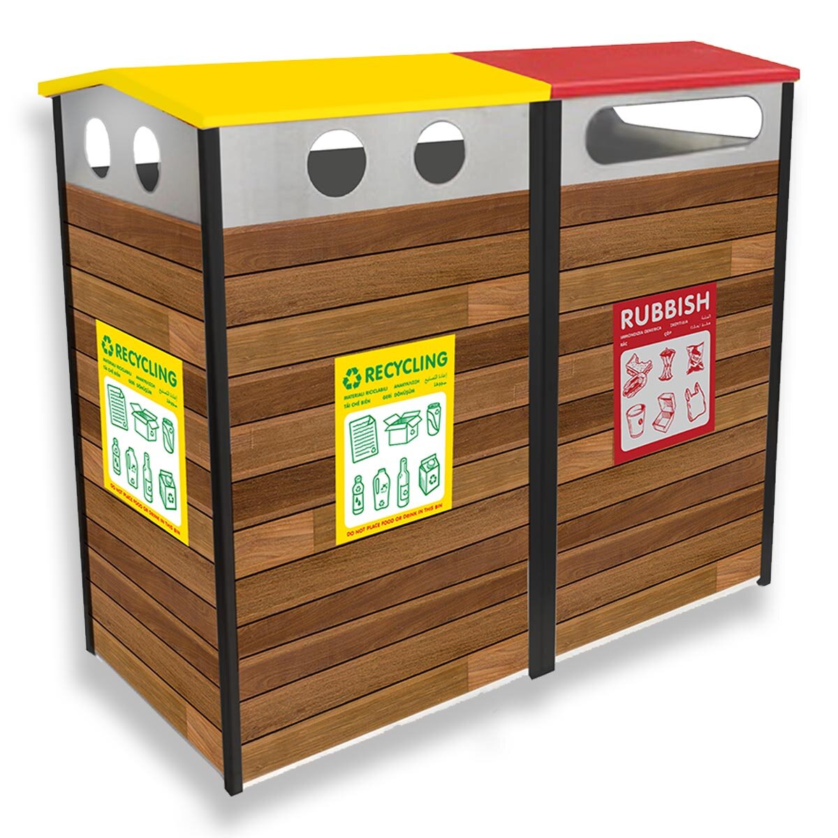 Architectural Modular design; dual rubbish, recycle or combined bin surrounds